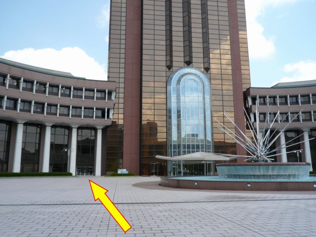 建物に近づいたら、大きなヒサシのついた正面玄関ではなく、左側のドアを目指して進んでください。