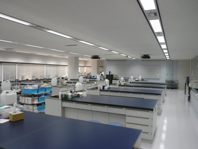 この実験室で、基礎的なものから本格的なものまで、いろいろな実験を行います。