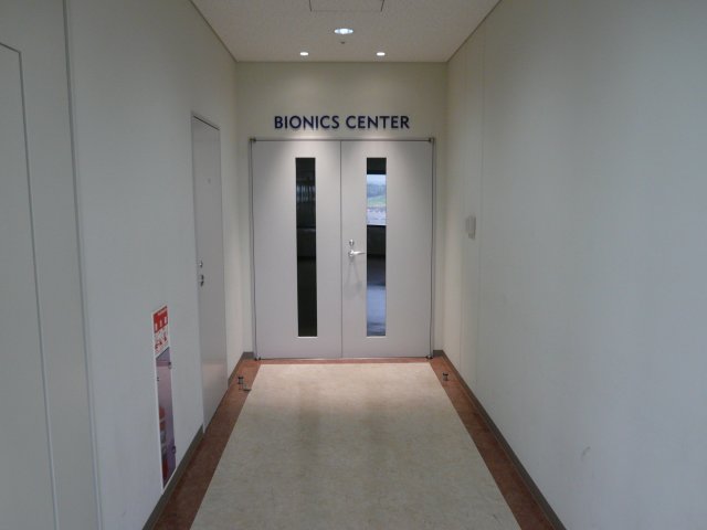 右側に見えているのは、いちばん大きなBionics Laboratry 1 (バイオニクス ラボラトリー/ラボラトリーとは実験室のことです)です。 この奥には少人数での実験に適したBionics Laboratry の2と3という、小さめの実験室があります。