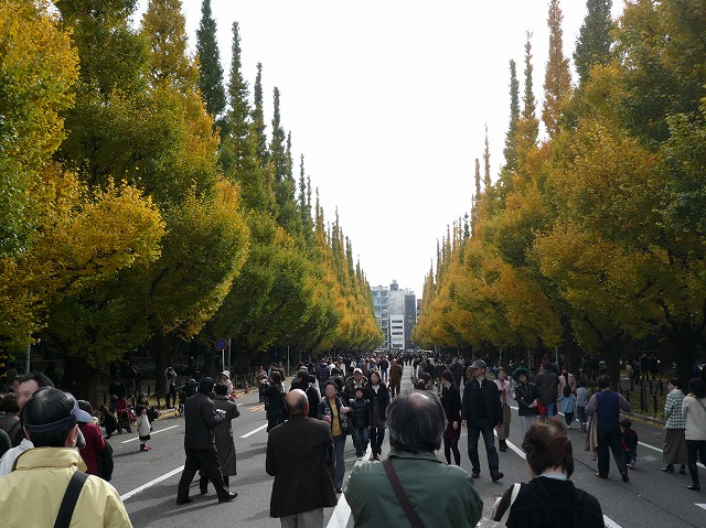 もうすっかり葉が落ちてしまい、雨降りということもあって非常に寒々しい状況ですね。ちなみに、ほぼ同じ時期の神宮外苑のイチョウ並木はといいますと・・・・・